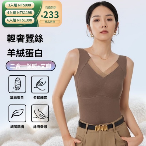 • 羊絨保暖小背心 NT$998 2025秋冬季保暖背心德絨帶胸墊內搭內衣 懶人保暖法 一件背心過寒冬 居家外出都能穿 輕鬆又自在
