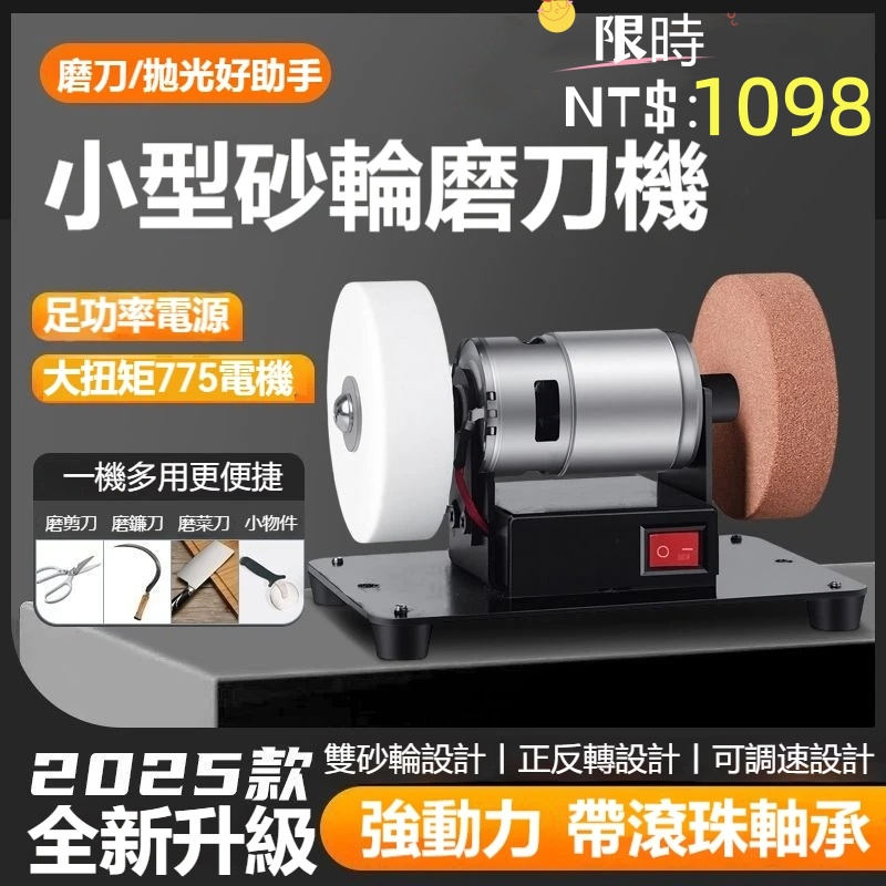 【2025新款家用小型砂輪機】大扭矩775電機強勁動力,七檔調速+正反轉設計,粗細雙砂輪磨刀抛光全能,不鏽鋼機身防鏽耐用,低噪靜音操作!